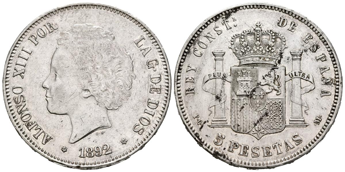 ALFONSO XIII (1885-1931). 5 Pesetas. (Ar. 25,03g/37mm). 1892 *18-92. Madrid PGM. (Cal-2019-100). MBC+.