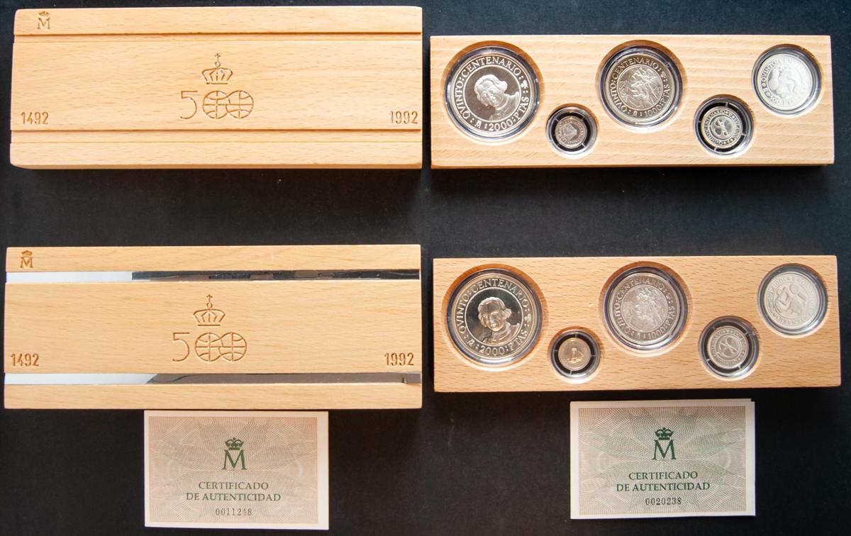 JUAN CARLOS I (1975-2014). Serie completa (8 estuches en total y 40 monedas). de la I a la IV de la Colección de 5 Valores de plata tanto en brillo como en mate. 1989-1992. FDC. Incluye estuches originales y certificados de autenticidad.