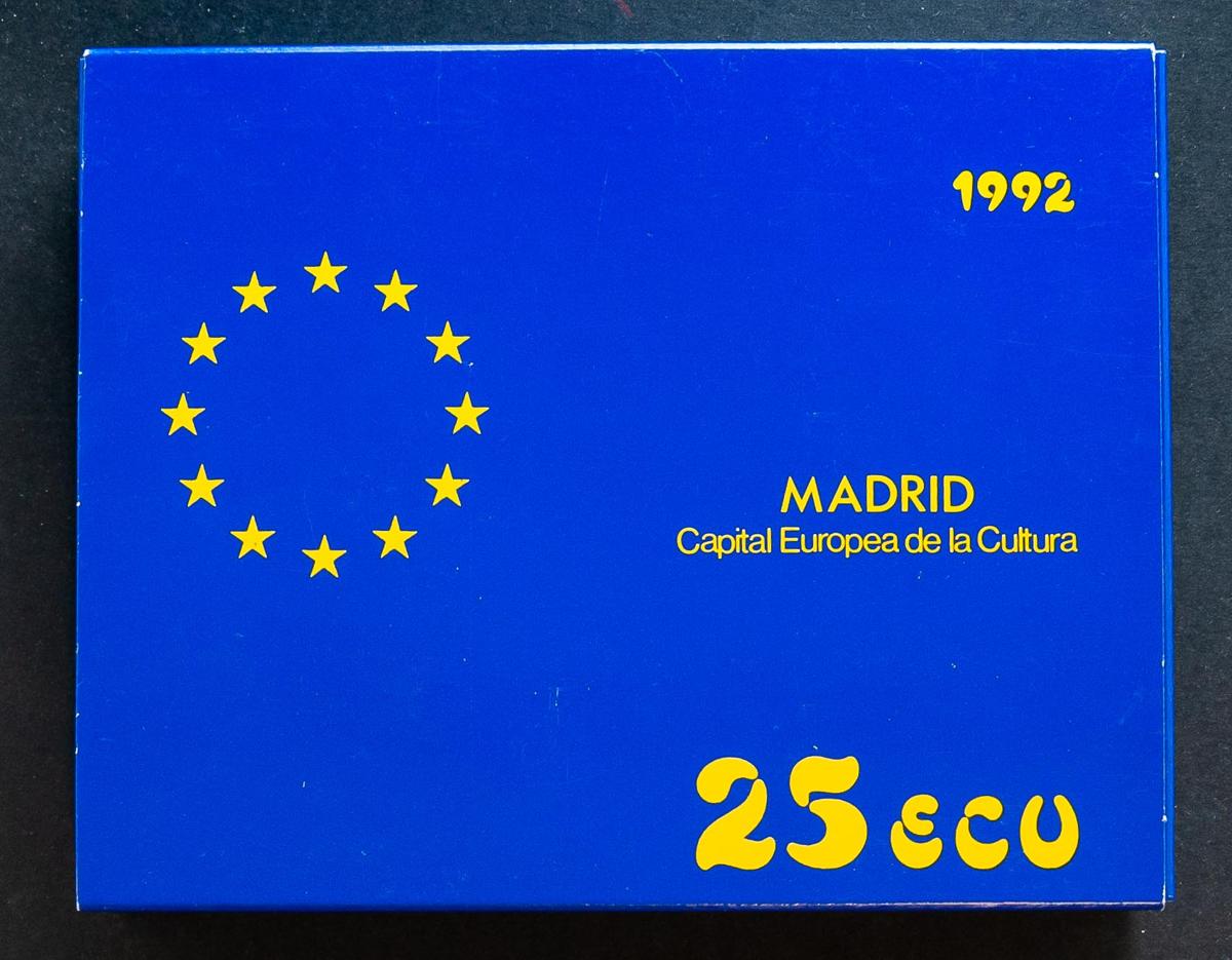 JUAN CARLOS I (1975-2014). 25 Ecu. (Ar. 168,75g/73mm). Madrid Capital Europea de la Cultura. 1992. FNMT. FDC. Presentada en estuche oficial y con certificado de autenticidad. 15.000 unidades acuñadas.
