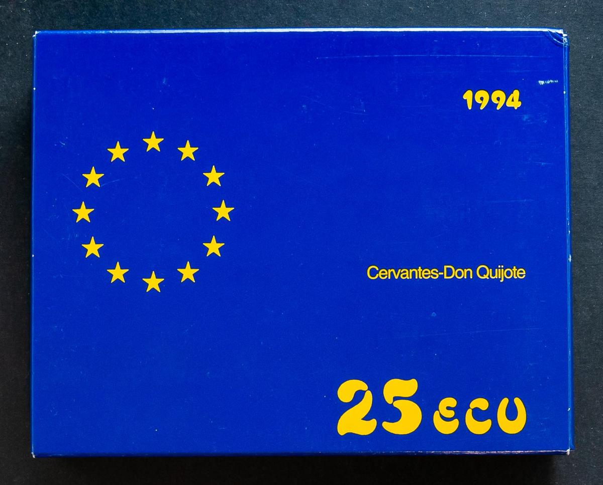 JUAN CARLOS I (1975-2014). 25 Ecu. (Ar. 168,75g/73mm). Cervantes Don Quijote. Batalla de Lepanto. 1994. FNMT. FDC. Presentada en estuche oficial y con certificado de autenticidad. 15.000 unidades acuñadas.