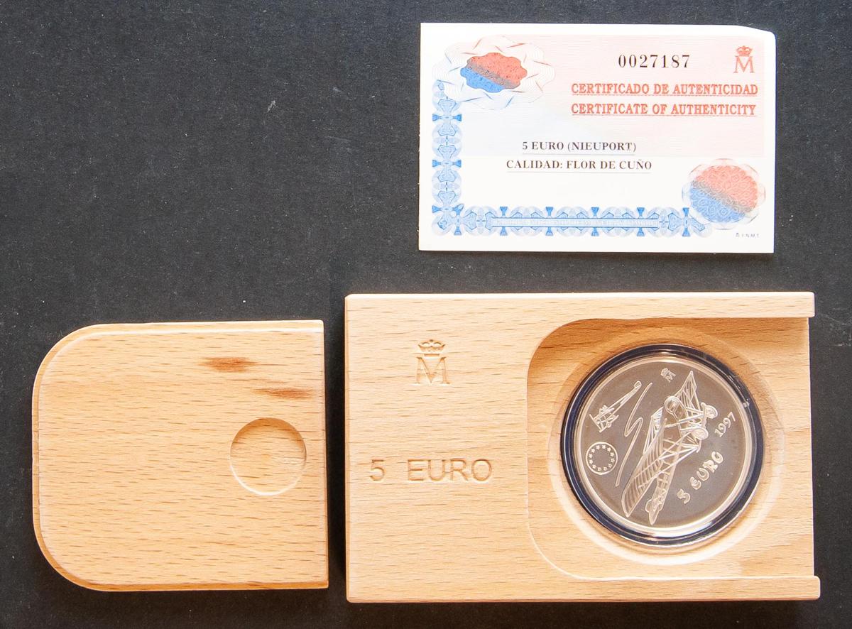 JUAN CARLOS I (1975-2014). 5 Euro. (Ar. 33,62g/42mm). Nieuport. 1997. FNMT. FDC. Presentada en estuche original y con certificado de autenticidad.