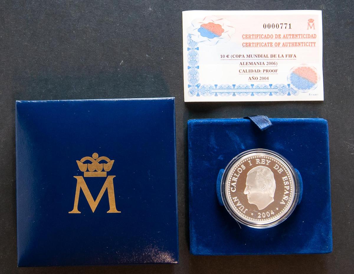 JUAN CARLOS I (197-2014). 10 Euros. (Ar. 27,00/40mm). Copa Mundial de la FIFA Alemania 2006. 2004. FNMT. PROOF. Presentada en estuche oficial, con cápsula y certificado de autenticidad.