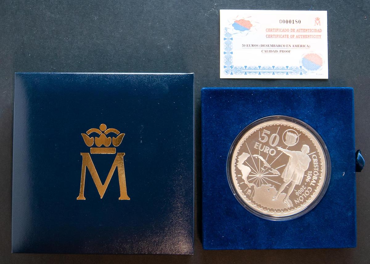 JUAN CARLOS I (1975-2014). 50 Euros (Ar. 168,75g/73mm). V Centenario Cristóbal Colón. 2006. FNMT. PROOF. Incluye estuche original y certificado de autenticidad. Tirada de sólo 6000 unidades.