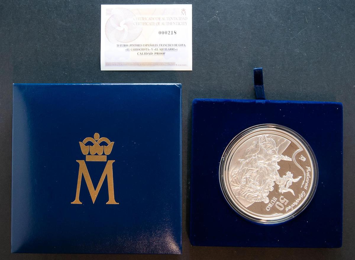 JUAN CARLOS I (1975-2014). 50 Euros (Ar. 168,75g/73mm). Pintores Españoles. Francisco de Goya. 2010. FNMT. PROOF. Incluye estuche original y certificado de autenticidad. Tirada de sólo 5000 unidades