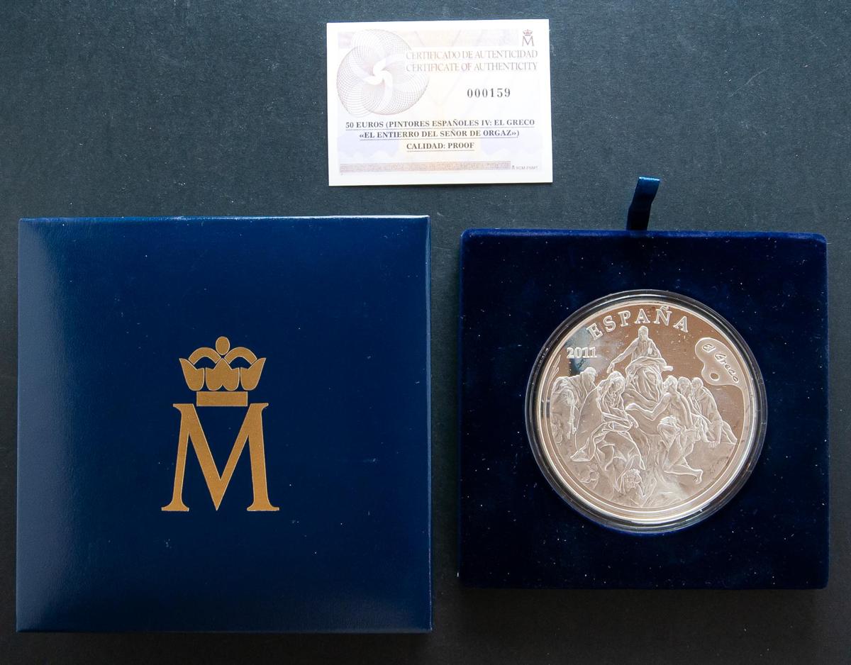JUAN CARLOS I (1975-2014). 50 Euros (Ar. 168,75g/73mm). Pintores Españoles. El Greco. 2011. FNMT. PROOF. Incluye estuche original y certificado de autenticidad. Tirada de sólo 5000 unidades.