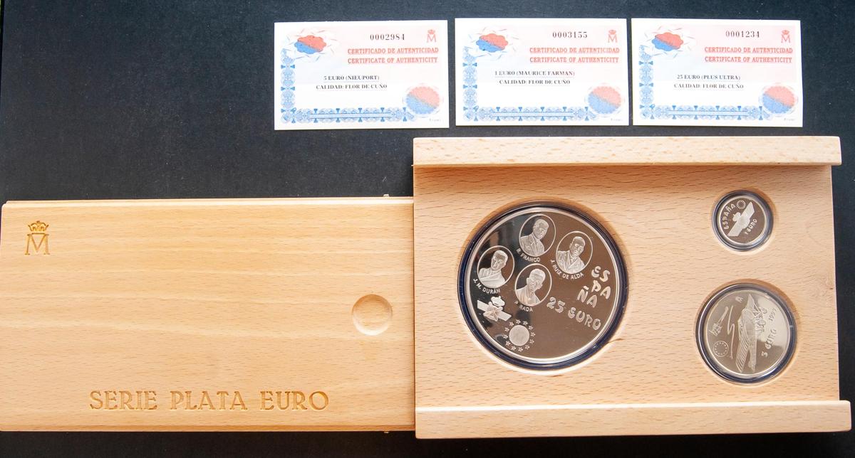 JUAN CARLOS I (1975-2014). Serie completa de la Aviación Española: 1, 5 y 25 Euros en plata. 1997. FNMT. PROOF. Presentada en estuche oficial, con cápsulas y certificado de autenticidad.
