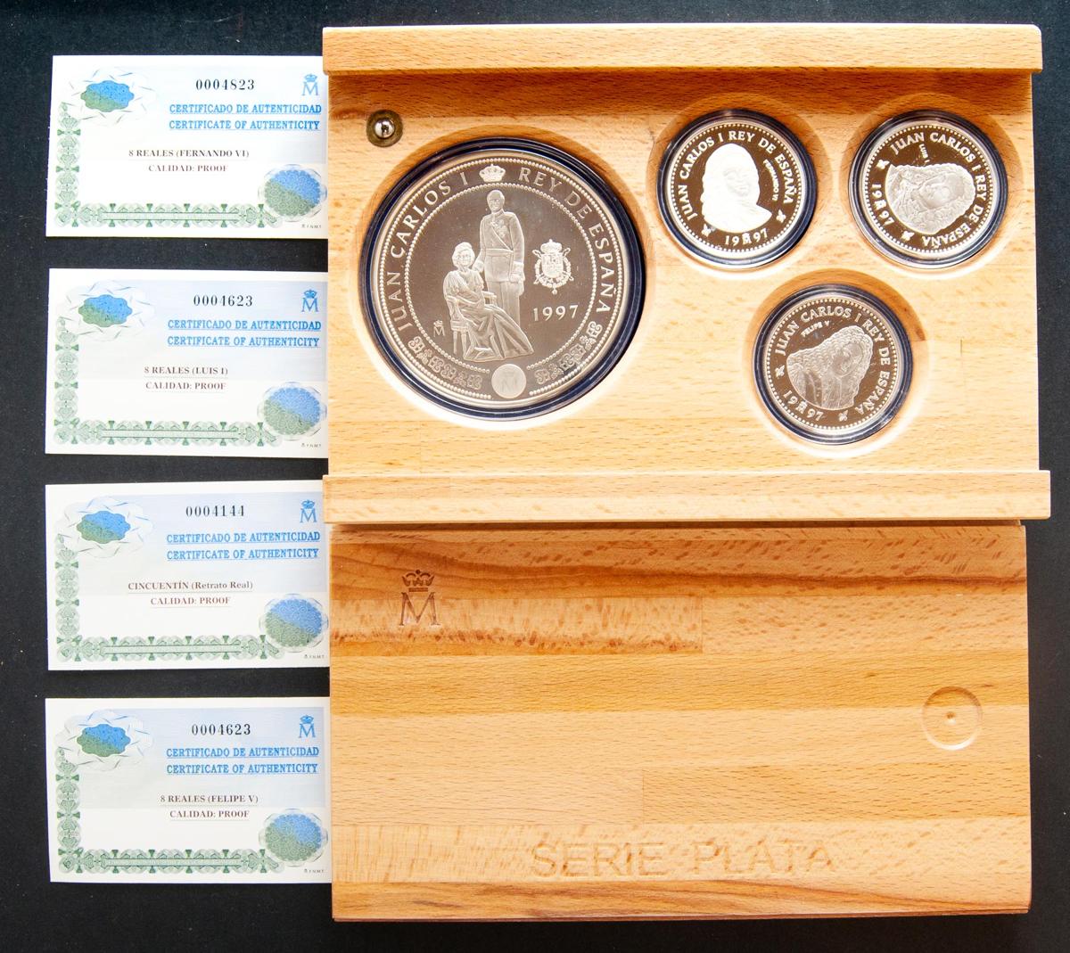 JUAN CARLOS I (1975-2014). III Centenario Casa de Borbón. 4 Monedas con valores de 10.000 y 2.000 Pesetas. 1997. FNMT. PROOF. Incluye estuche original y certificado de autenticidad.