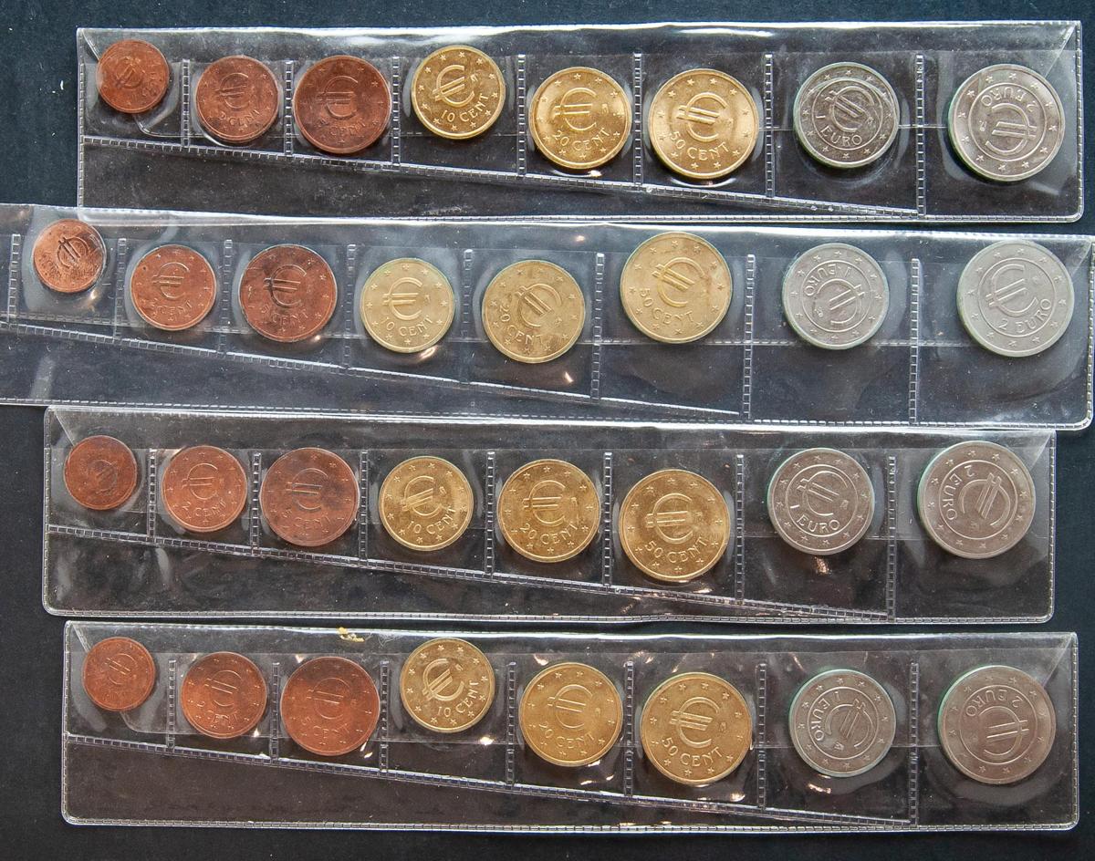 JUAN CARLOS I (1975-2014). Conjunto de 7 tiras completas de los Euros en Prueba de Churriana (Málaga) con valores comprendidos entre 1 Céntimo y 2 Euros. 1998. SC.