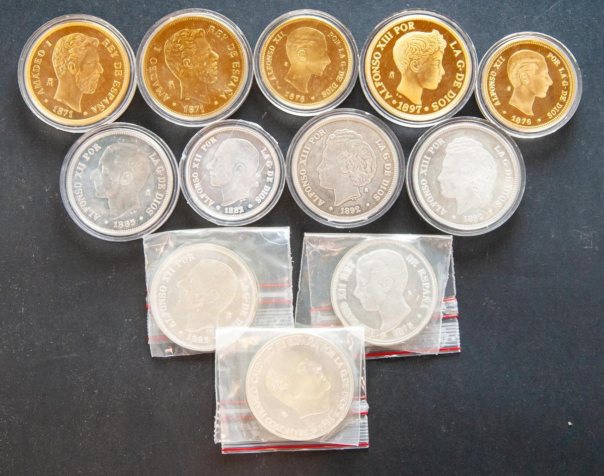 JUAN CARLOS I (1975-2014). Conjunto de 12 Piezas en plata y plata dorada de 0,925 miléimas correspondientes a la colección Historia de la Peseta. FNMT. PROOF