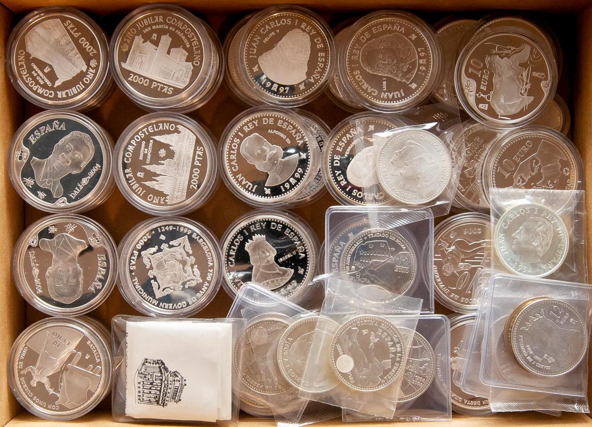 JUAN CARLOS I (1975-2014). Extraordinaria colección de decenas con los módulos predominantes de 10 y 12 Euros y 2000 Pesetas. Enorme variedad temática, conmemorativa y prácticamente sin monedas repetidas . PROOF y SC. A EXAMINAR.