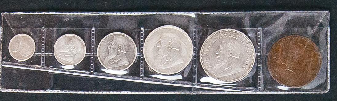 AFRICA. Serie compuesta por 6 monedas con los valores: 2 1/2, 2 y 1 Schilling, 6 y 3 Zar de 1896 y 1 Penny de 1898. MBC/MBC+. A EXAMINAR.
