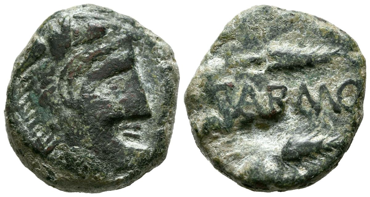 CARMO (Carmona, Sevilla). As. (Ae. 16,10g/24mm). 80 a.C. (FAB-466). Anv: Cabeza de Hércules con piel de león a derecha. Rev: Leyenda: CARMO, entre dos espigas a derecha. MBC.