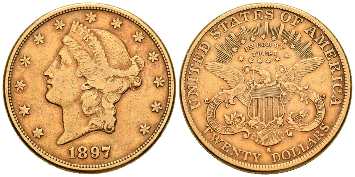 ESTADOS UNIDOS. 20 Dollars. (Au. 33,27g/34mm). 1897. San Francisco. (Km#74.3). MBC-.