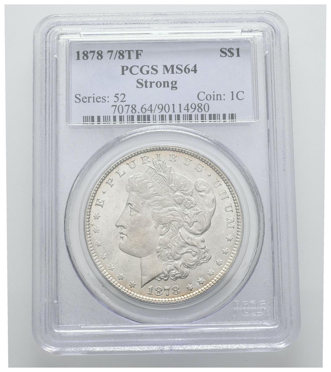 ESTADOS UNIDOS. 1 Dollar (Ar. 26,73g/38mm)*. 1878. Philadelphia. 7/8 TF Strong. (Km#110). Encapsulado por PCGS MS64. *Peso y medida teórico.