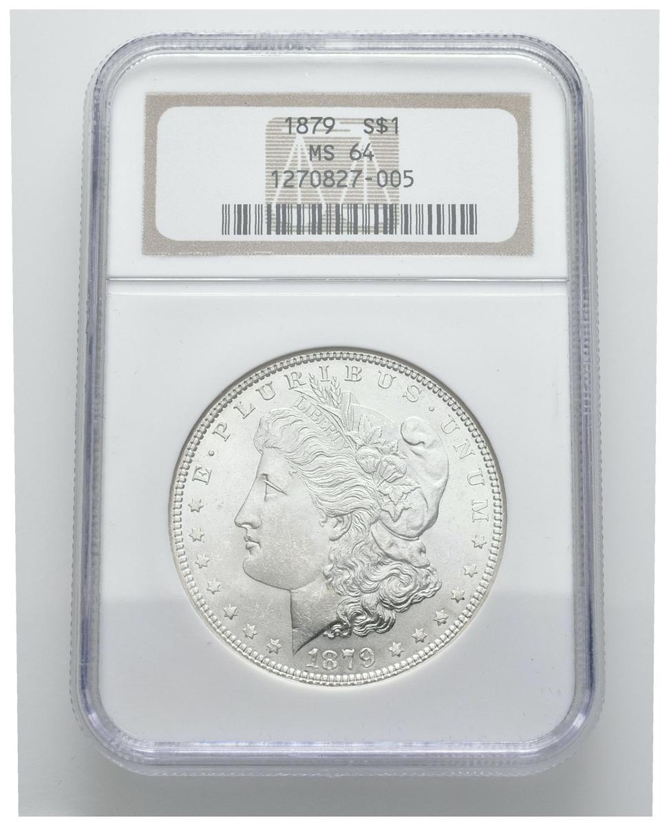 ESTADOS UNIDOS. 1 Dollar (Ar. 26,73g/38mm)*. 1879. Philadelphia. (Km#110). Encapsulado por NGC MS64. *Peso y medida teórico.