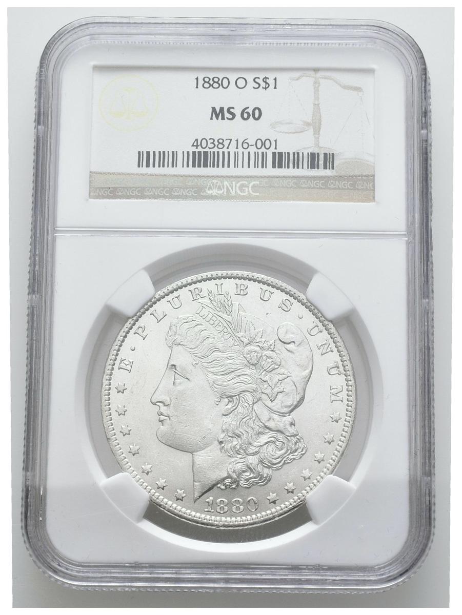 ESTADOS UNIDOS. 1 Dollar (Ar. 26,73g/38mm)*. 1880. Nueva Orleans O. (Km#110). Encapsulado por NGC MS60. *Peso y medida teórico.