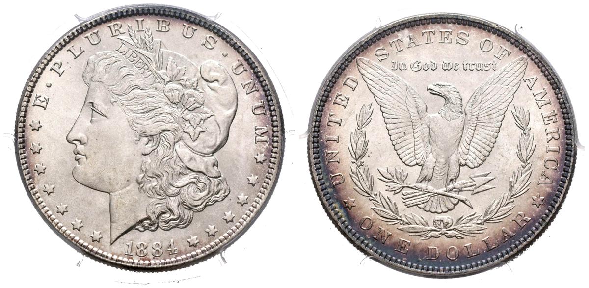 ESTADOS UNIDOS. 1 Dollar (Ar. 26,73g/38mm)*. 1884. Philadelphia. (Km#110). Encapsulado por PCGS MS65. *Peso y medida teórico.