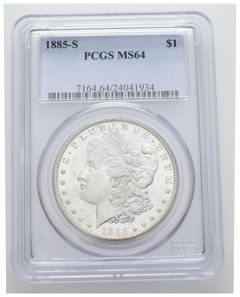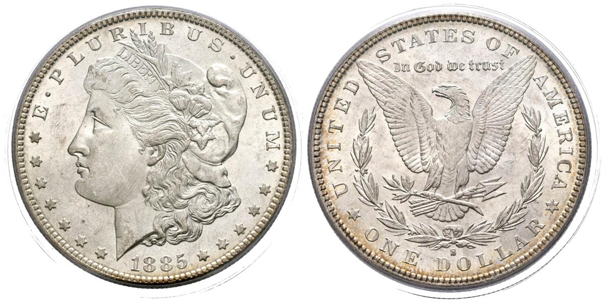 ESTADOS UNIDOS. 1 Dollar (Ar. 26,73g/38mm)*. 1885. San Francisco S. (Km#110). Encapsulado por PCGS MS64. *Peso y medida teórico.