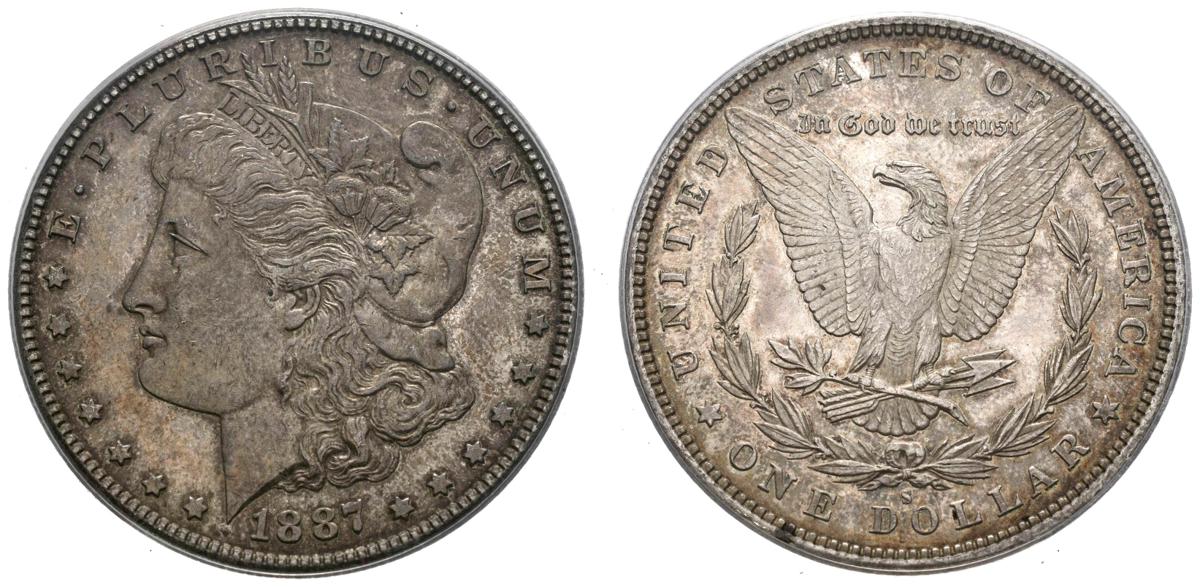 ESTADOS UNIDOS. 1 Dollar (Ar. 26,73g/38mm)*. 1887. San Francisco S-S. VAM-2. TOP 100. (Km#110). Encapsulado por ANACS AU58. *Peso y medida teórico.