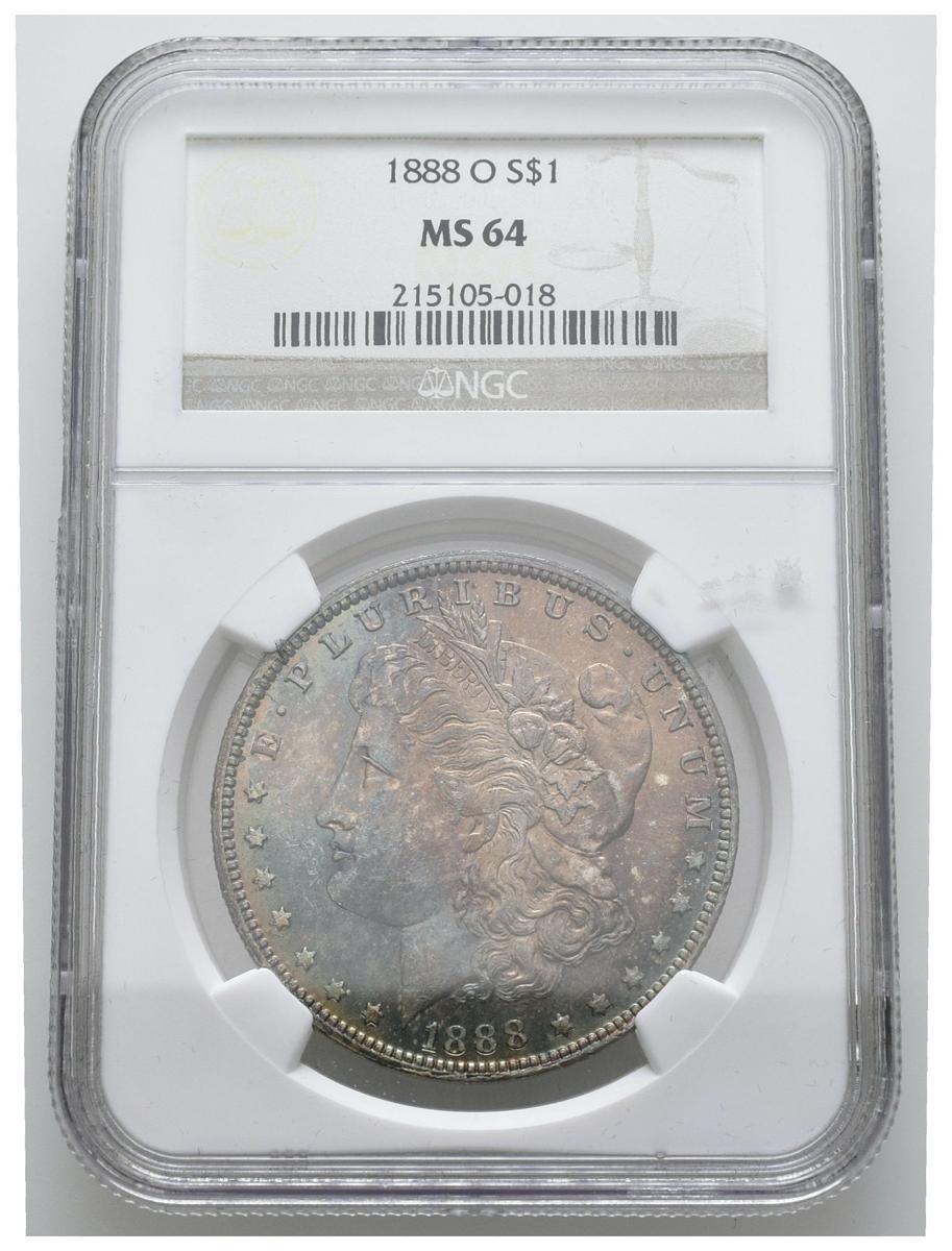 ESTADOS UNIDOS. 1 Dollar (Ar. 26,73g/38mm)*. 1888. Nueva Orleans O. (Km#110). Encapsulado por NGC MS64. *Peso y medida teórico.