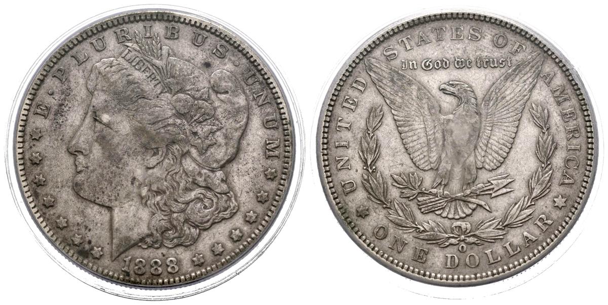 ESTADOS UNIDOS. 1 Dollar (Ar. 26,73g/38mm)*. 1888. Nueva Orleans O. (Km#110). Doubled die obverse. Encapsulado por PCGS XF40. *Peso y medida teórico.