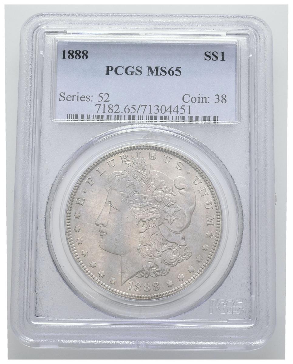 ESTADOS UNIDOS. 1 Dollar (Ar. 26,73g/38mm)*. 1888. Philadelphia. (Km#110). Encapsulado por PCGS MS65. *Peso y medida teórico.