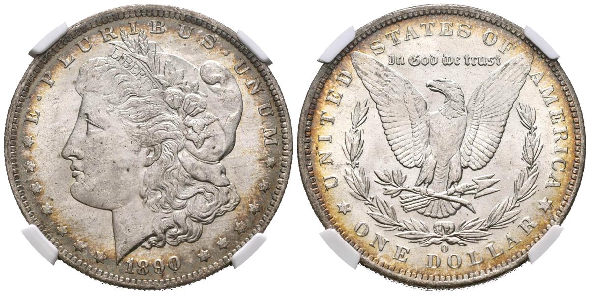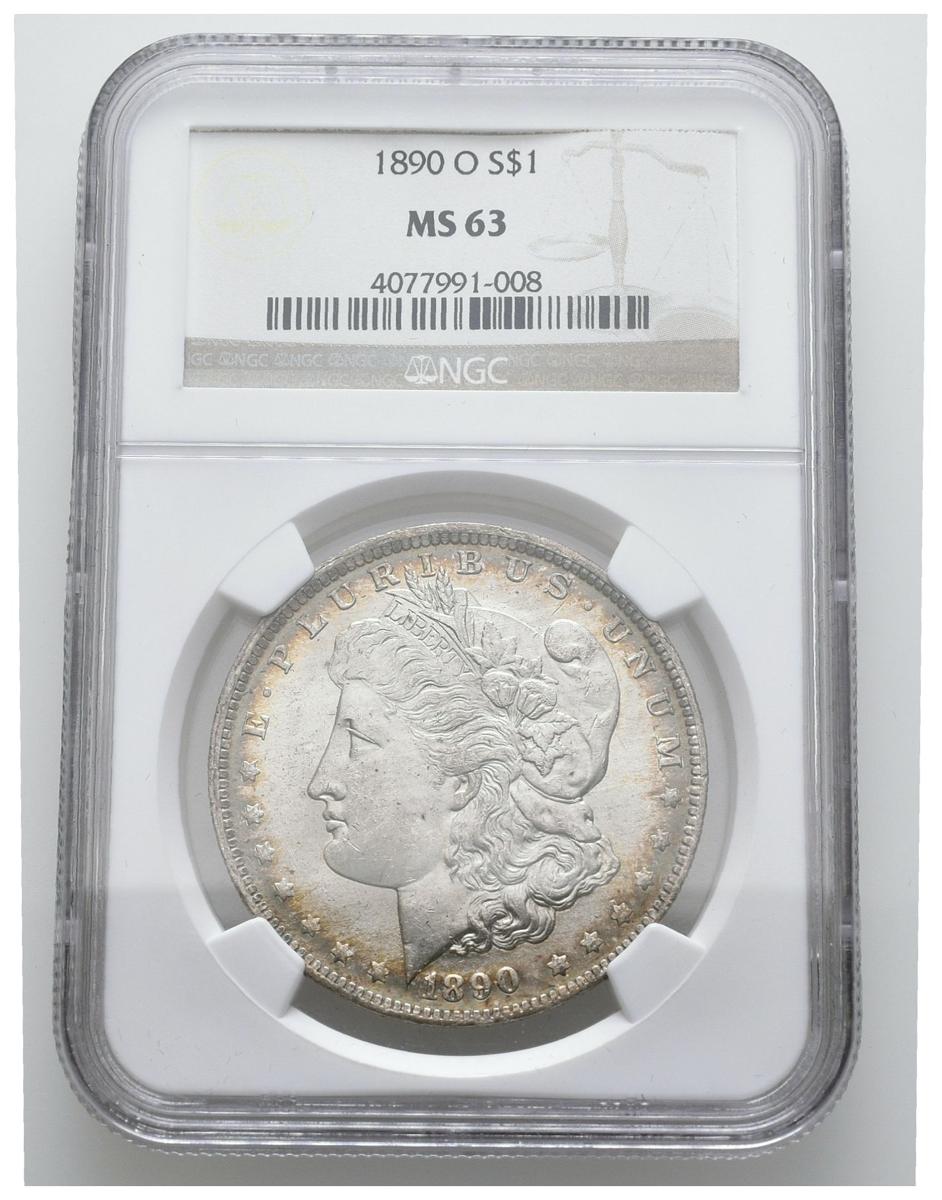 ESTADOS UNIDOS. 1 Dollar (Ar. 26,73g/38mm)*. 1890. Nueva Orleans O. (Km#110). Encapsulado por NGC MS63. *Peso y medida teórico.