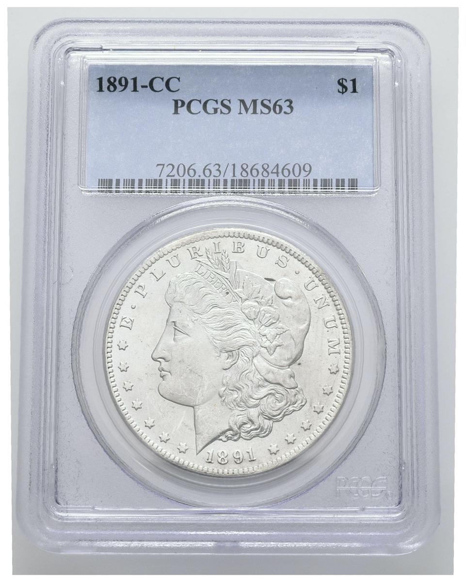 ESTADOS UNIDOS. 1 Dollar (Ar. 26,73g/38mm)*. 1891. Carson City CC. (Km#110). Encapsulado por PCGS MS63. *Peso y medida teórico.