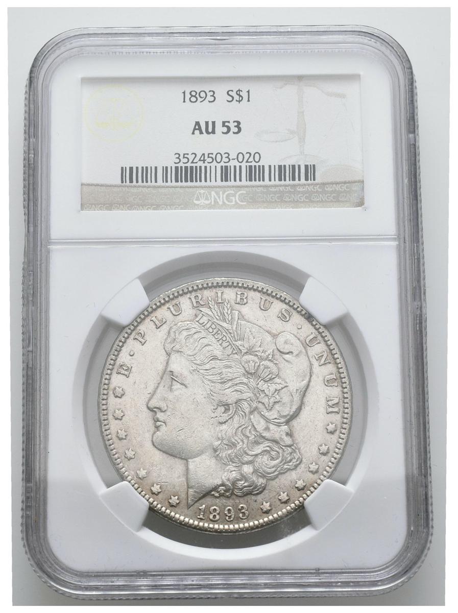 ESTADOS UNIDOS. 1 Dollar (Ar. 26,73g/38mm)*. 1893. Philadelphia. (Km#110). Encapsulado por NGC AU53. *Peso y medida teórico.