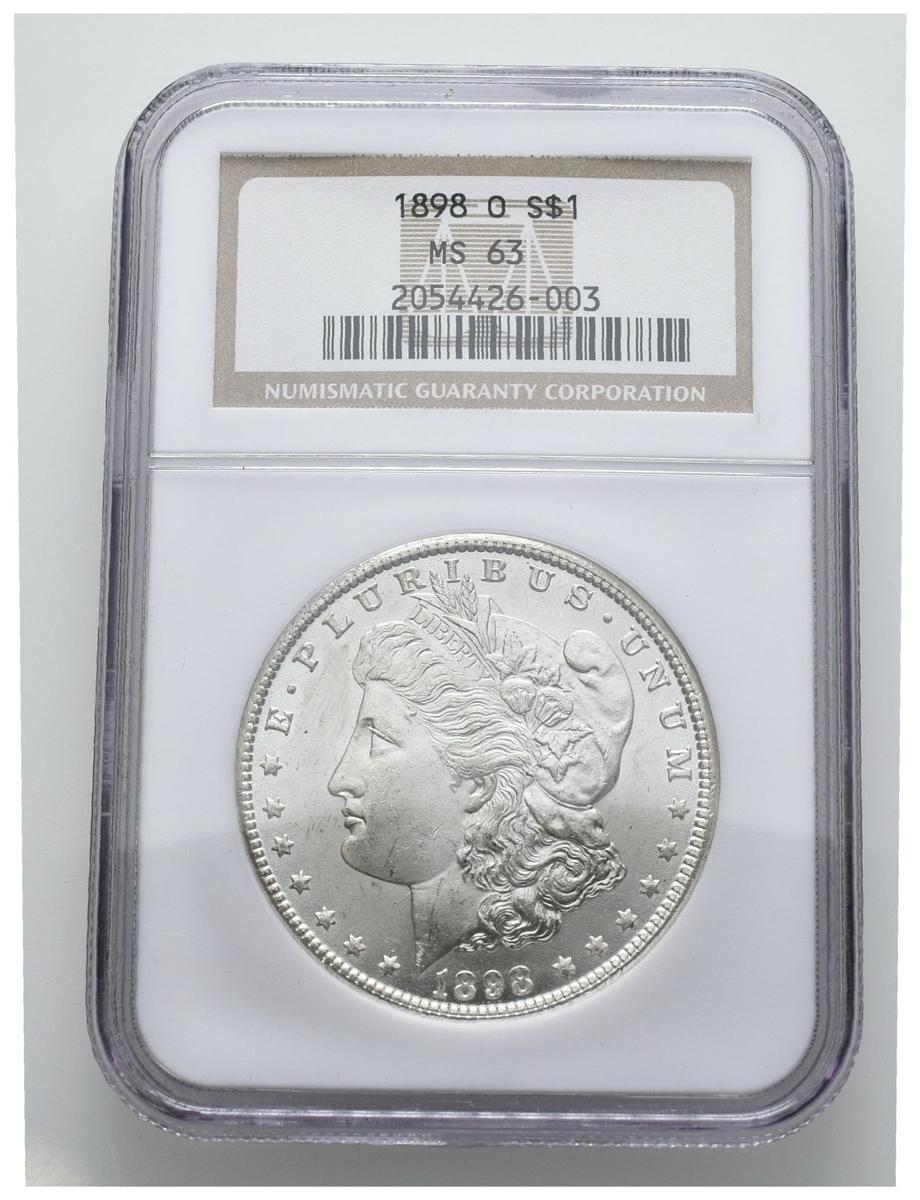 ESTADOS UNIDOS. 1 Dollar (Ar. 26,73g/38mm)*. 1898. Nueva Orleans O. (Km#110). Encapsulado por NGC MS63. *Peso y medida teórico.