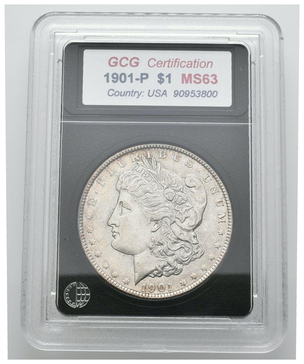 ESTADOS UNIDOS. 1 Dollar (Ar. 26,73g/38mm)*. 1901. Philadelphia. (Km#110). Encapsulado por GCG MS63. *Peso y medida teórico.