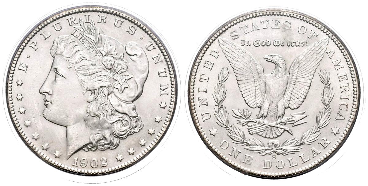 ESTADOS UNIDOS. 1 Dollar (Ar. 26,73g/38mm)*. 1902. San Francisco S. (Km#110). Encapsulado por PCGS MS63. *Peso y medida teórico.