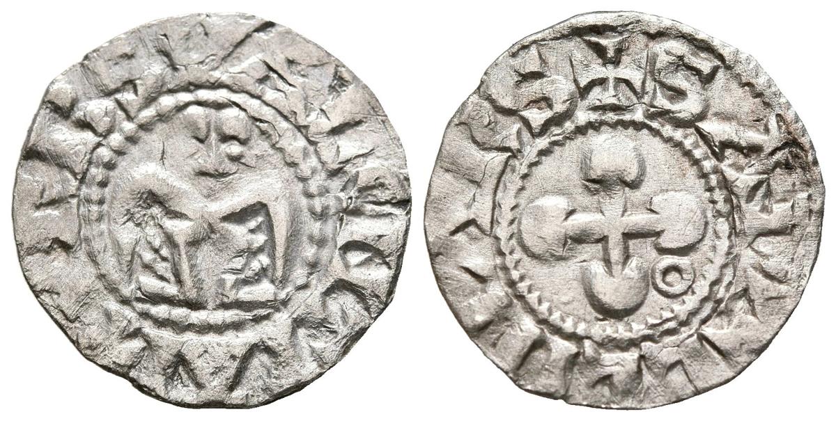 FRANCIA, Obispado de Valence y Die (Anónimo). Dinero. (Ar. 0,93g/17mm). 1157-1276. (Poey D'Avant 4690). Anv: Angel de frente, alrededor leyenda: URBS VALENTIAI. Rev: Cruz, alrededor leyenda: S.APOLLINARS. MBC.