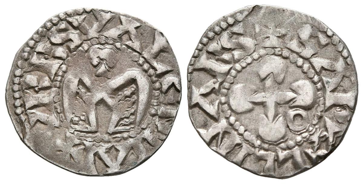 FRANCIA, Obispado de Valence y Die (Anónimo). Dinero. (Ar. 1,06g/18mm). 1157-1276. (Poey D'Avant 4690). Anv: Angel de frente, alrededor leyenda: URBS VALENTIAI. Rev: Cruz, alrededor leyenda: S.APOLLINARS. MBC+. Bonito ejemplar.