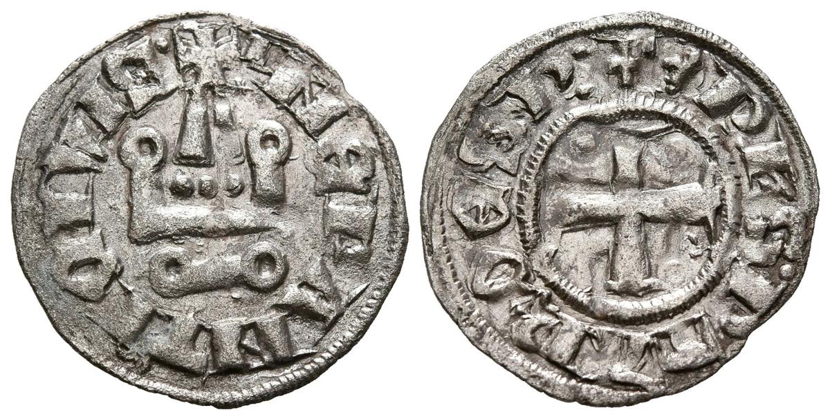 FRANCIA, Felipe de Tarento (Cruzadas). Dinero. (Ve. 0,74g/19mm). 1306-1313. Acaya. (A.G. Malloy y otros CfC Sts nº24 y ss). MBC.