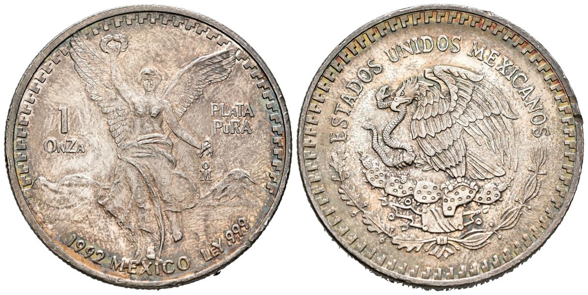 MEXICO. 1 Onza. (Ar. 31,09g/36mm). 1992. (Km#494). SC. Pátina irisada.