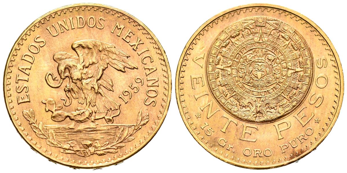 MEXICO. 20 Pesos. (Au. 16,71g/27mm). 1959. Ciudad de México. (Km#478). EBC+. Levísimo golpecito en canto.