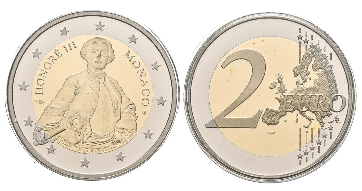 MONACO. 2 Euros (Cu-Ni. 8,50g/26mm). 2020. 300 Aniversario del Nacimiento del Príncipe Honoré III. Calidad: Belle Épreuve (PROOF). Tirada de sólo 15.000 unidades. Incluye estuche y certificado de autenticidad.