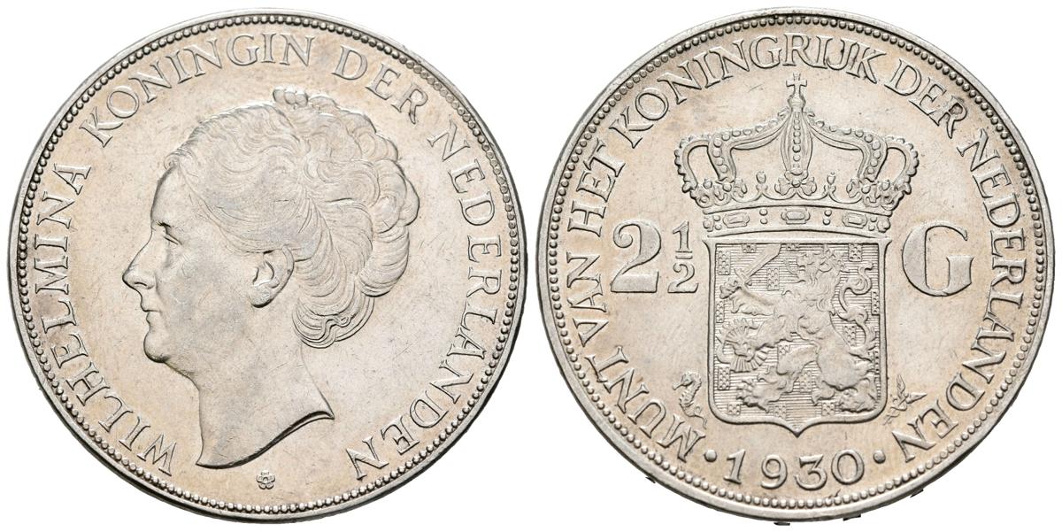 PAÍSES BAJOS. 2 1/2 Gulden (Ar. 25,03g/38mm). 1930. Wilhelmina. (Km#165) MBC+.