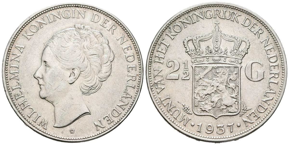 PAÍSES BAJOS. 2 1/2 Gulden (Ar. 24,93g/38mm). 1937. Wilhelmina. (Km#165) MBC+.