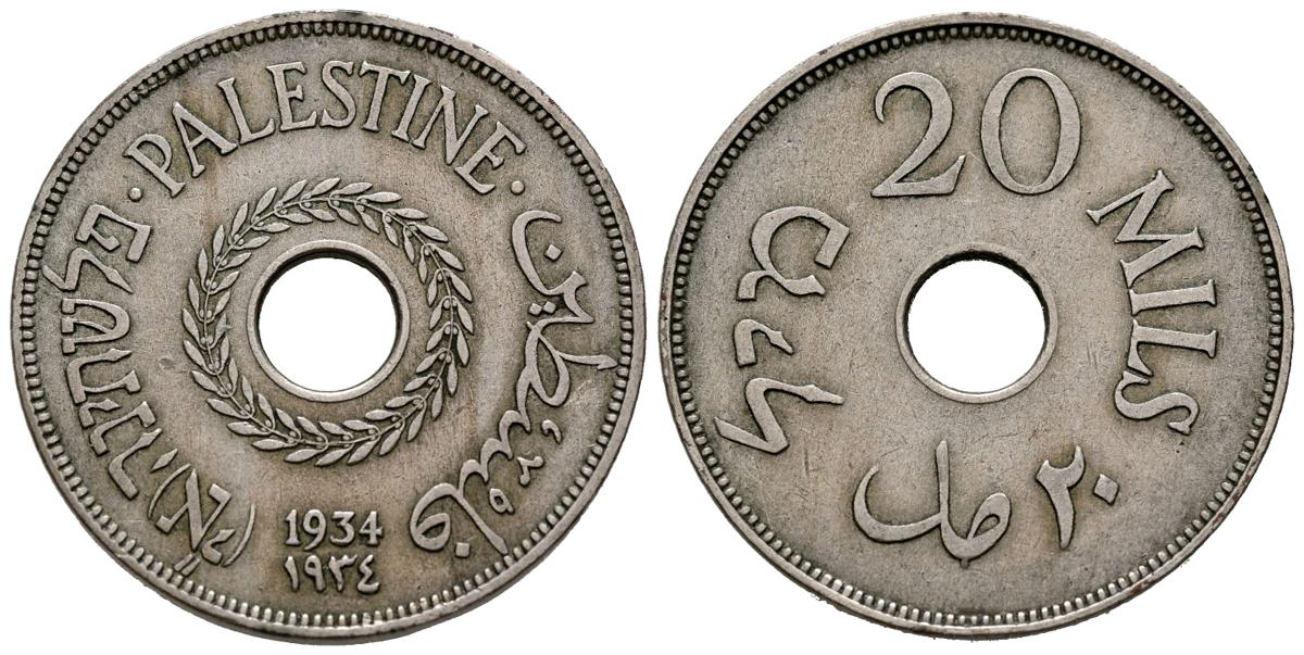 PALESTINA. 20 Mils (Ni. 11,24g/30mm). 1934. Mandato Británico. (Km#5). MBC+. Fecha rara.
