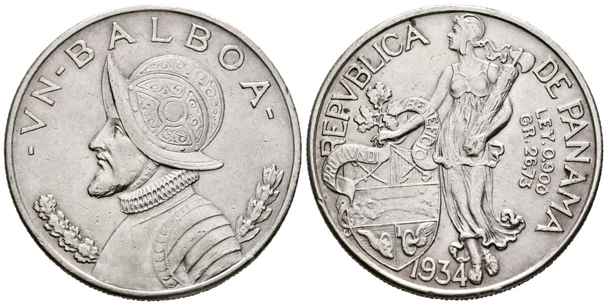 PANAMÁ. 1 Balboa. (Ar. 26,65g/38mm). 1934. (Km#13). MBC+.