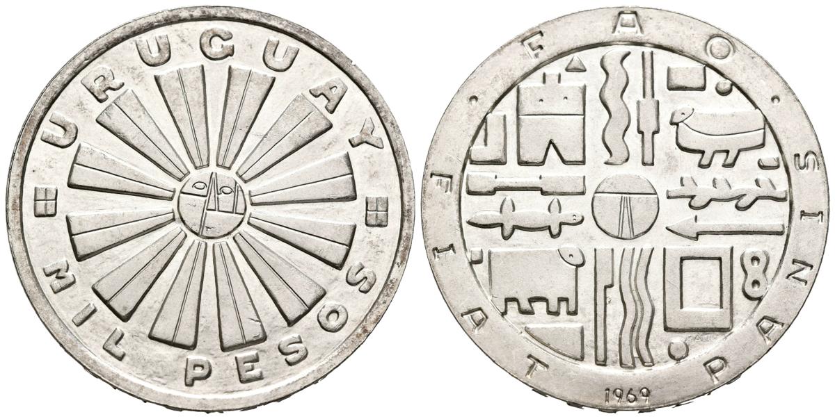 URUGUAY. 1000 Pesos. (Ar. 25,01g/37mm). 1969. FAO. (Km#55). EBC.