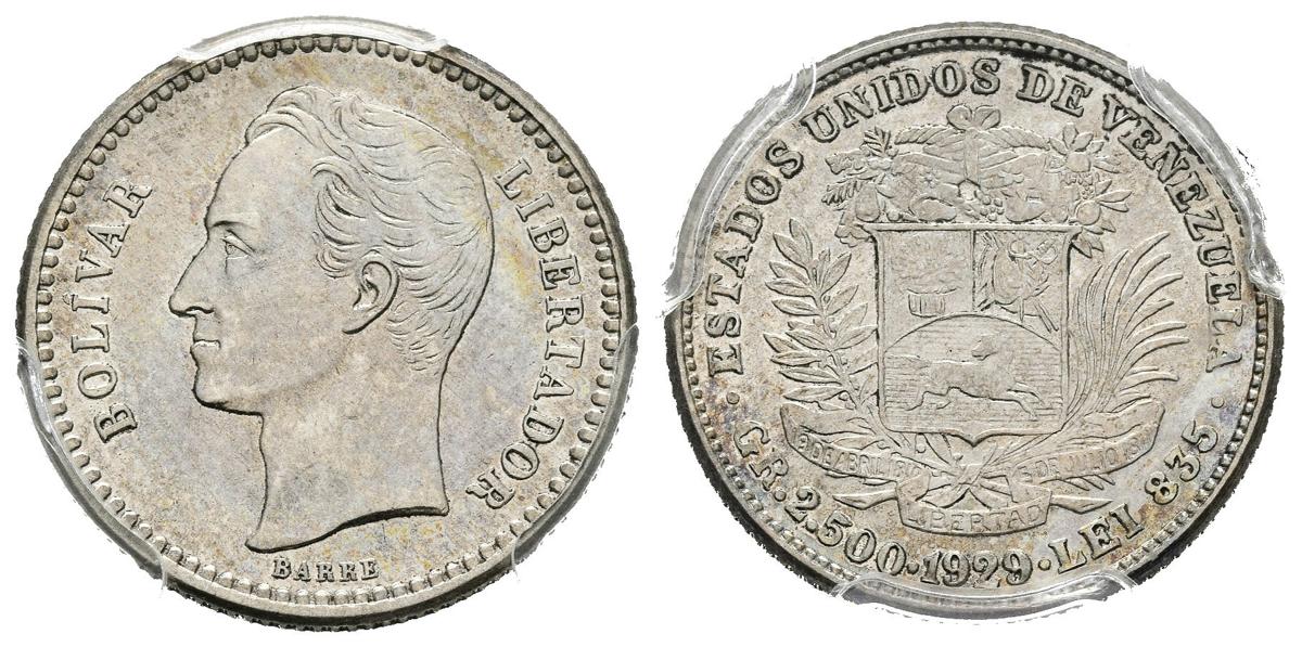 ESTADOS UNIDOS DE VENEZUELA. 1/2 Bolívar. (Ar. 2,50g/18mm). 1929. Philadelphia. (Km#Y21). Encapsulado PCGS AU Details. Limpiada.
