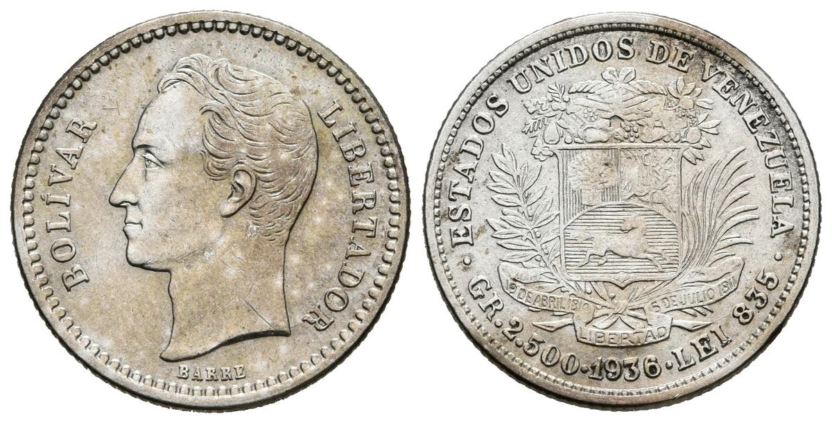 ESTADOS UNIDOS DE VENEZUELA. 1/2 Bolívar. (Ar. 2,50g/18mm). 1936. Philadelphia. (Km#Y21). EBC+. Bonita pátina.