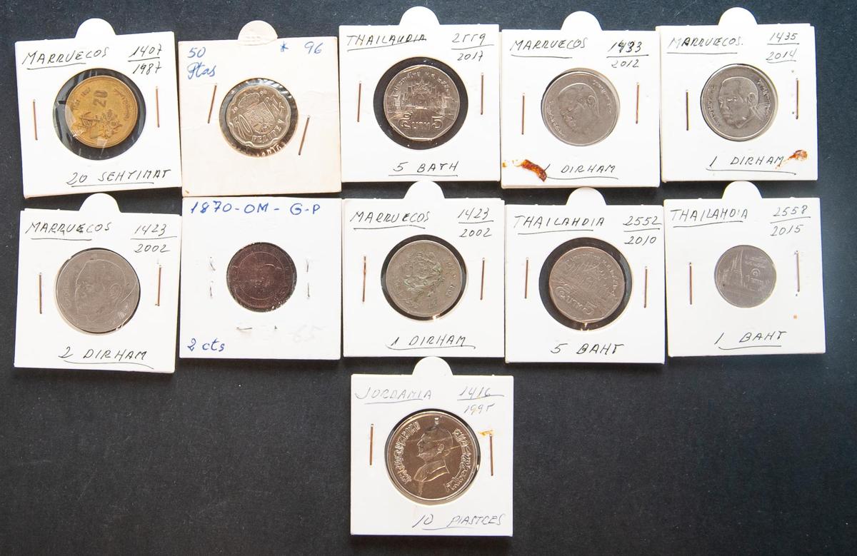 Interesante conjunto formado por alrededor de 120 piezas en su mayoría bronces y de muy diferentes periodos históricos. Destacan un buen numero de bronces bajo imperiales de módulo pequeño. También encontramos piezas de la Monarquía Española en cobre, algunas con resellos y moneda extranjera moderna. Diferentes estados de conservación. A EXAMINAR