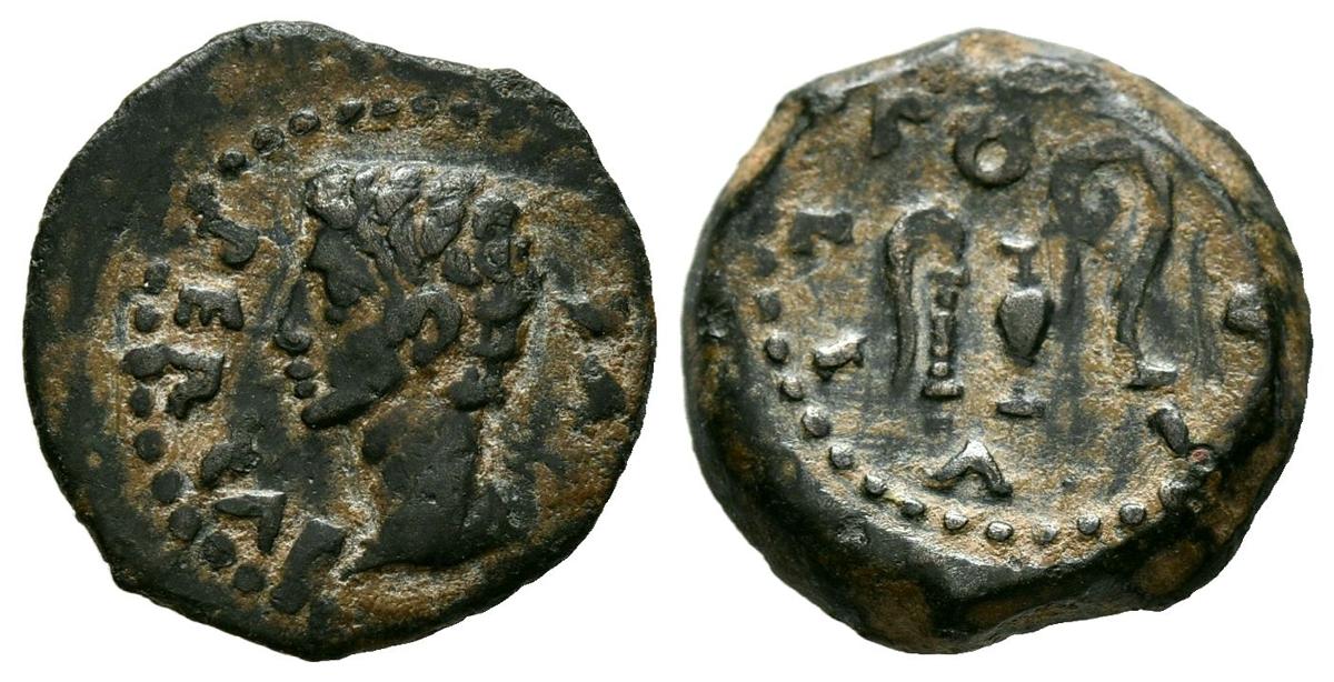 COLONIA PATRICIA (Córdoba). Cuadrante. (Ae. 2,21g/15mm). 27 a.C.-14 d.C. (FAB-1993). Anv: Cabeza de Augusto a izquierda, alrededor leyenda: PER CAE AVG. Rev: Aspérgilo, preferículo, lítuo y patera, alrededor leyenda: COLO PATR. MBC+.
