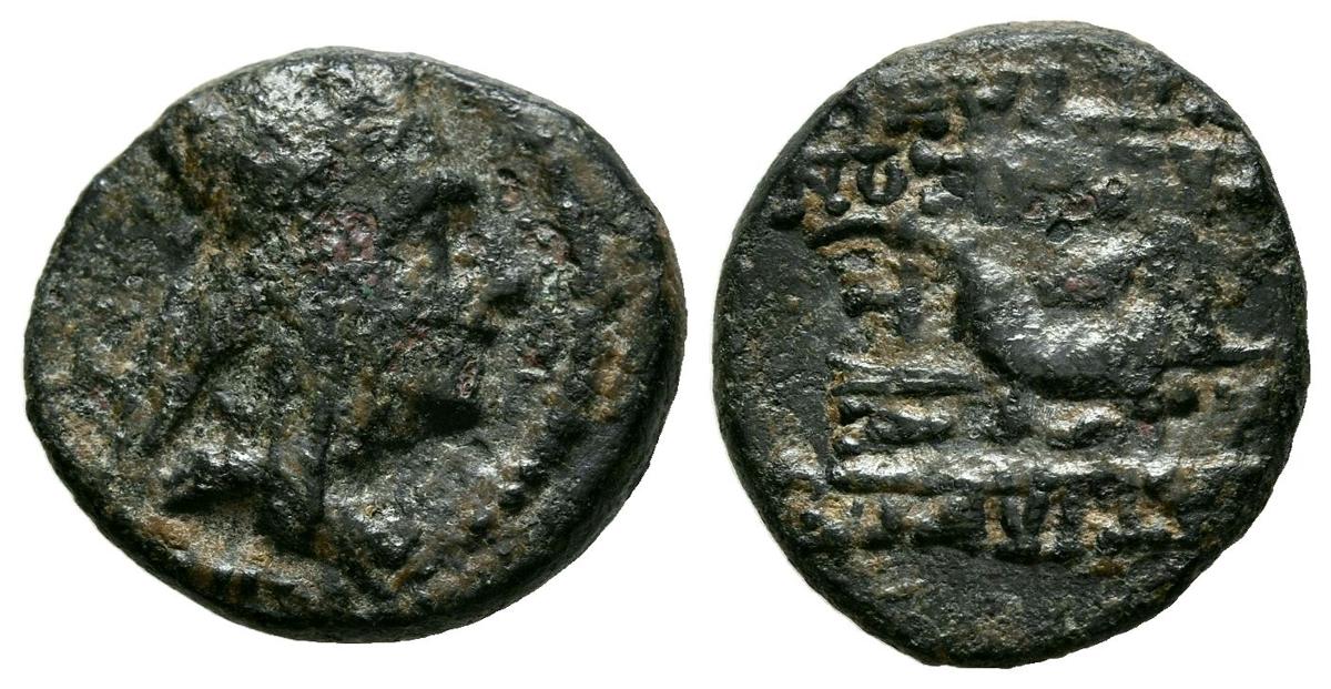 REYES DE ARMENIA, Tigranes. Ae15. (Ae. 2.50g/15mm). 95-56 a.C. Artaxata (M&D 87). Anv: Busto femenino con corona mural a derecha portando estandarte. Rev: Cornucopia, alrededor leyenda griega, debajo monograma. MBC-.