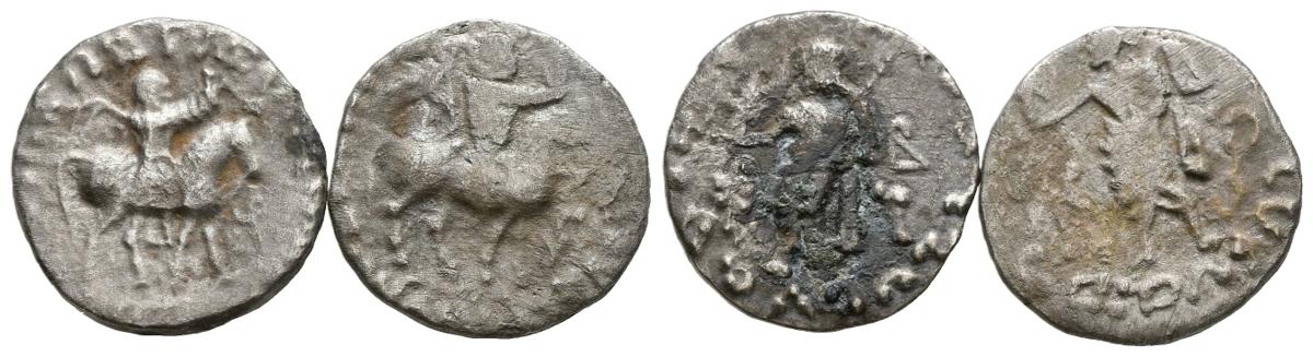 REYES INDO-ESCITAS. Conjunto de 2 Dracmas de Azes II de Pakistán. A EXAMINAR.