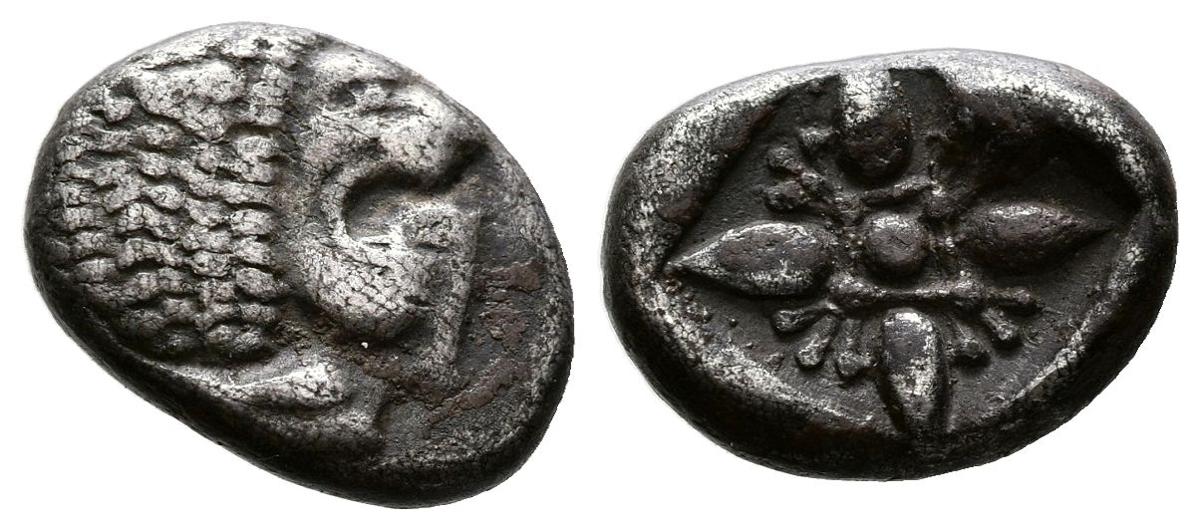 JONIA, Miletos. Dracma. (Ar. 1,08g/10mm). 510-494 a.C. (SNG Copenhagen 952). Anv: Cabeza de león a derecha. Rev: Diseño floral incuso. MBC+.